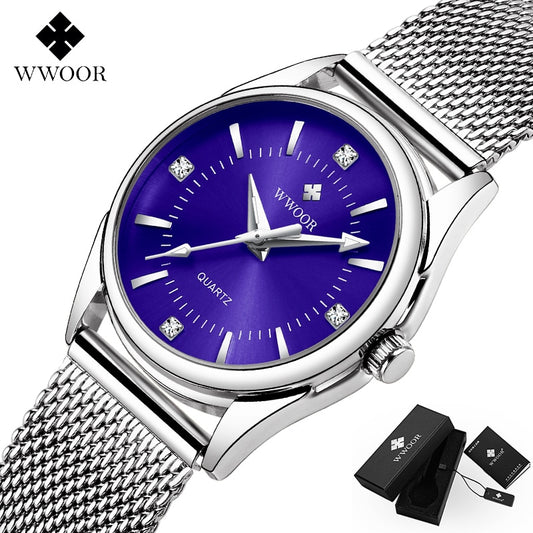 WWOOR Small Luxury Top Brand Ladies wrist watch / Silver Stainless Steel Diamonds, enter Discount Code S0BZVDKASTKZ Buy 1 get 1 FREE / FREE Shipping