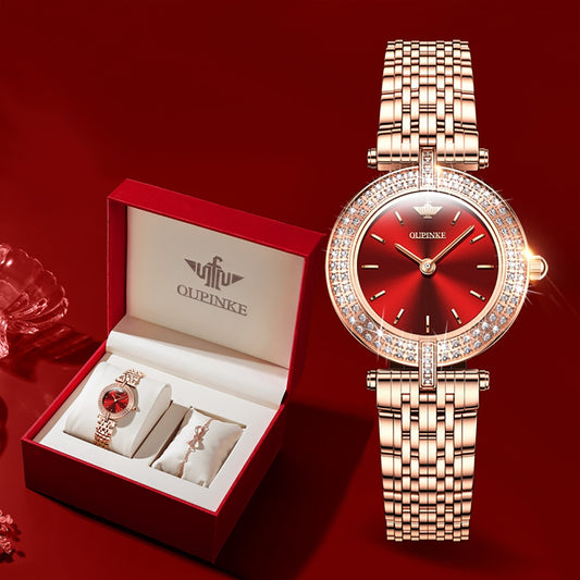 Swiss OUPINKE Top Brand beautiful/elegant Ladies Wristwatch Waterproof Watches Sapphire Mirror Tungsten Steel Watchstrap