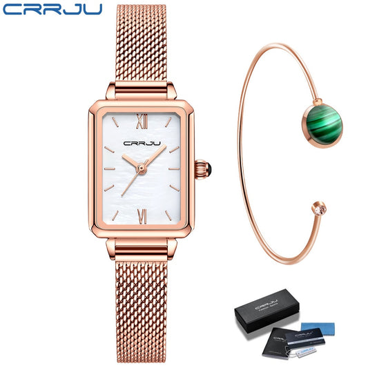 Ladies Green Square Watch Analog Quartz Stainless Steel Mesh Leather Band Casual Fashion Ladies Wrist Watches 3ATM Waterproof