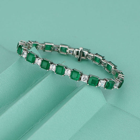 Beautiful 925 Sterling Silver Emerald Diamond tennis Bracelet for Women / Free Shipping